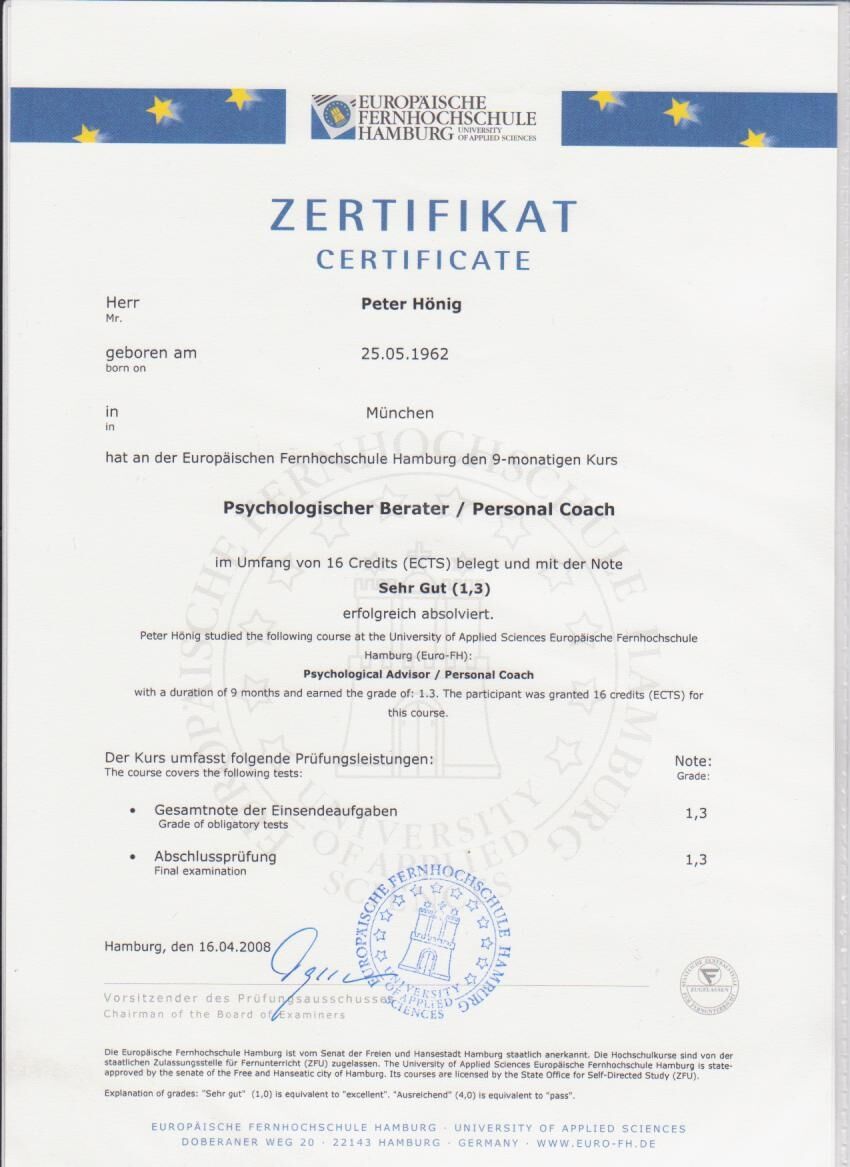 Zertifikat Psychologischer Berater / Personal Coach